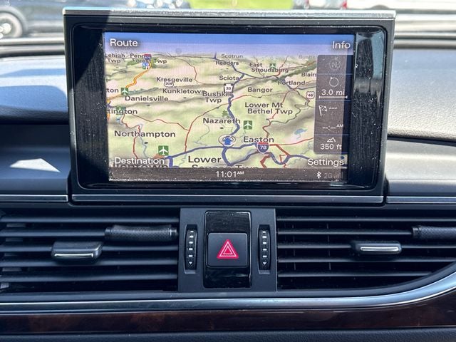 - Radio: Multi Media Interface (MMI) Navigation Plus -inc: 8" central display screen, control knob and buttons in center console, operates climate control, central locking, instrument cluster, vehicle diagnostics, cellular phone, navigation, CD and radio functions, Bluetooth® streaming audio, HD radio, MMI touch and jukebox, 7" Color Driver Information System, 8-color driver information system, 7" color display, 5-function trip computer (fuel range, average fuel mileage, current fuel mileage, average speed and elapsed time and trip odometer) operated by toggle switch at end of windshield wiper stalk, outside temperature display, radio/telephone display, active auto check system w/speed warning device, pictogram display for open door and deck lid, efficiency program, Audi Connect w/Online Services, Google Earth navigation