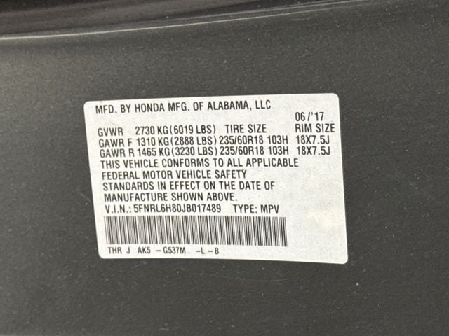 - Radio: 160-Watt AM/FM/HD/SiriusXM Audio System -inc: 6 speakers, subwoofer, Honda satellite-linked navigation system w/voice recognition and Honda HD digital traffic, Bluetooth® HandsFreeLink, Bluetooth® streaming audio, MP3/auxiliary input jack, radio data system (RDS), SMS text message function, 2.5-amp USB smartphone/audio interface port in center console, 2 2.5-amp USB charging ports in second row, CabinControl remote compatibility, 8" display audio w/high-resolution (720P) electrostatic touch-screen and customizable feature settings, Apple CarPlay/Android Auto, HondaLink subscription services, mobile hotspot capability, illuminated steering wheel-mounted audio and navigation controls and body-colored fin-type roof-mounted antenna