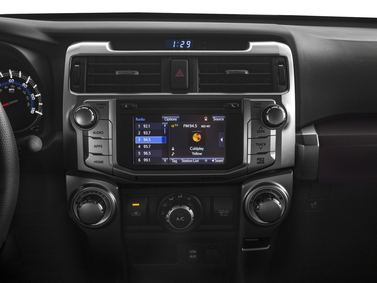 - Radio: Entune Premium Audio w/Navigation -inc: Entune Multimedia bundle (6.1" high resolution touch-screen w/split screen display, AM/FM CD player w/MP3/WMA playback capability, 8 speakers, auxiliary audio jack, USB 2.0 port w/iPod connectivity and control, advanced voice recognition, hands-free phone capability, phone book access and music streaming via Bluetooth wireless technology), Siri Eyes Free, Entune AppSuite, HD Radio, HD Radio predictive traffic and Doppler weather overlay, AM/FM cache radio, SiriusXM satellite radio w/3-month complimentary all access trial, Gracenote album cover art and integrated backup camera display w/projected path, Entune App Suite includes Destination Search, iHeartRadio, MovieTickets.com, OpenTable, Pandora, Facebook Places, Yelp and Slacker Radio; real-time info including traffic, weather, fuel prices, sports and stocks Access to Entune services is subscription free. See toyota.com/entune for details.