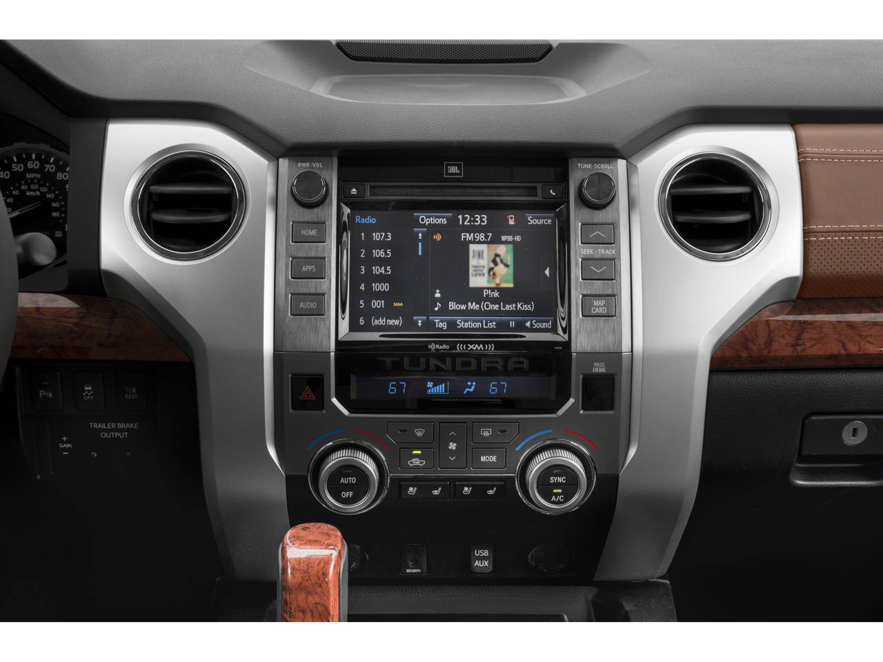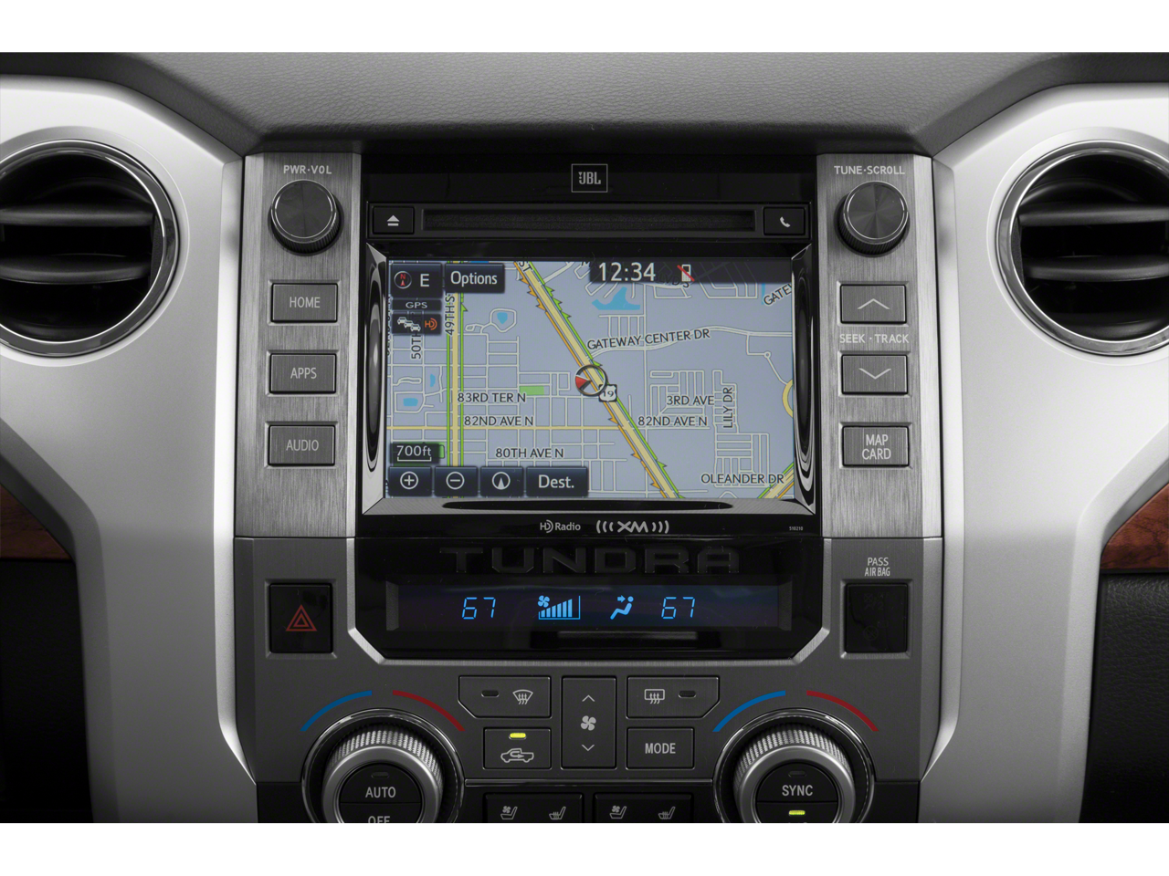 - Radio: Entune Premium w/JBL Audio & Navigation -inc: AM/FM/HD Radio, CD player MP3/WMA playback capability, integrated navigation system, AM/FM cache radio, 12 JBL speakers including subwoofer and amplifier, 7" high-resolution touch-screen display w/split-screen, auxiliary audio jack, USB 2.0 port w/iPod connectivity and control, Gracenote album cover art, HD predictive traffic and Doppler weather overlay, Bluetooth hands-free phone capability w/advanced voice recognition, phone book access and music streaming and Siri Eyes Free, Entune App Suite, Destination Search, iHeartRadio, MovieTickets.com, OpenTable, Pandora, Yelp, Facebook Places, Slacker Radio and real-time info w/traffic, weather, fuel prices, sports and stocks, SIRIUSXM Satellite Radio, complimentary SiriusXM All Access 90-day trial subscription