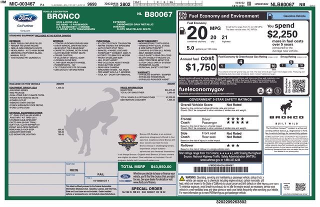 - Vehicle Name: Ford Bronco