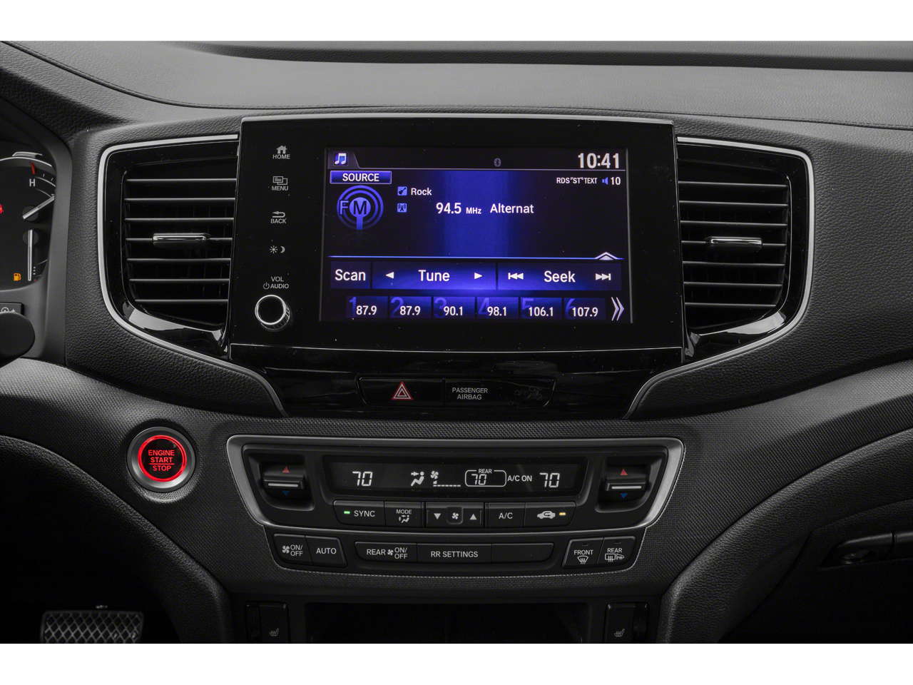 - Radio: 215-Watt Audio System w/7 Speakers -inc: subwoofer, Bluetooth streaming audio, MP3/auxiliary input jack, Radio Data System (RDS), Speed-Sensitive Volume Compensation (SVC), 8" display audio w/high-resolution electrostatic touch screen and customizable feature settings, Apple CarPlay compatibility, Android Auto compatibility, HondaLink, SMS text message function (Compatible w/select phones w/Bluetooth, Your wireless carrier's rate plans apply, State or local laws may limit use of texting feature, Only use texting feature when conditions allow you to do so safely.) and 1.5-amp USB smartphone/audio interface in front console (1 port)